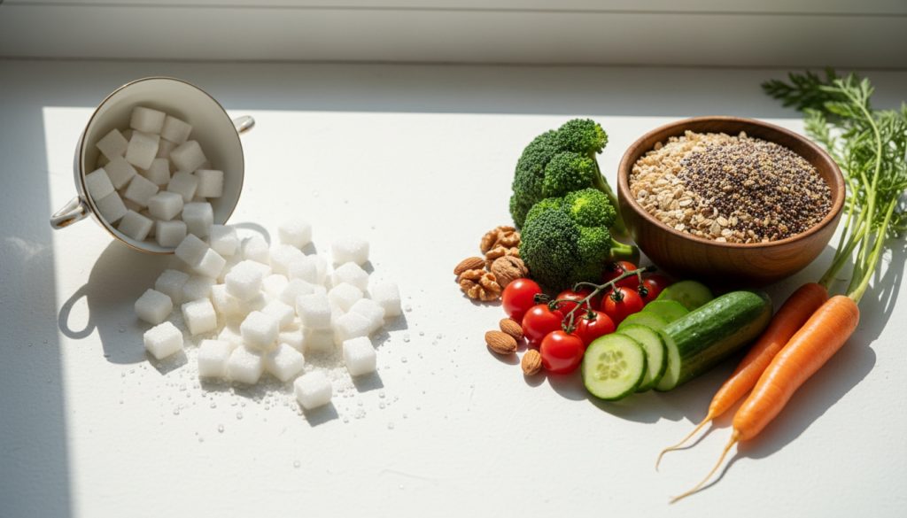 - ограничение быстроусвояемых углеводов с высоким гликемическим индексом (сладкие напитки, добавленный сахар, белая выпечка);