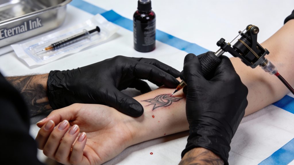 Убедитесь, что иглы достаются из запечатанного пакета при вас; кожа обрабатывается антисептиком; мастер использует новые перчатки и маску; окружение чистое. Остановите процесс, если что-то вас беспокоит. Ограничьте размер первой сеанса (не больше ладони) — это позволяет оценить реакцию организма. Для большой татуировки делайте несколько сеансов с интервалом 4+ недели.