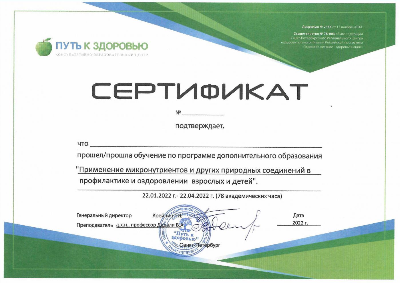 Мы имеем лицензии на образовательную и медицинскую деятельность и аккредитованы по общероссийской программе «Здоровое питание — здоровье нации»